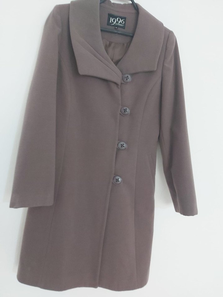 Bej renkli, uzun, düğmeli ve klasik kesim kadın kaban. Modern klasik tarzda, ofis ve iş ortamları için uygundur. Yumuşak ve sıcak kumaştan üretilmiştir.