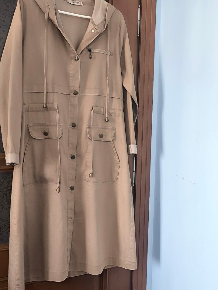 Bej Kadın Uzun Düğmeli Trençkot