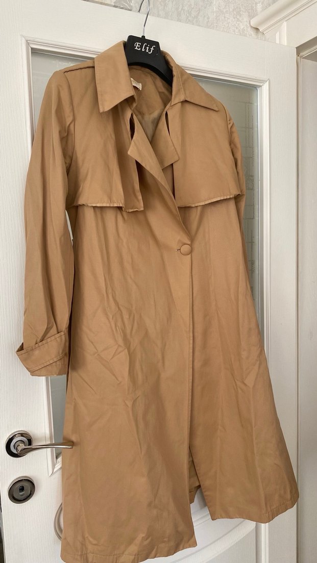 Bej renkli, keten kumaştan uzun kadın trençkot. Parlak dokusu, salaş kesimi, drapeli tasarımı ve kesik yakası ile sokak stili için uygundur. İç astari da hafif bir yırtık var ama dikilerek düzeltilebilir bundan dolayı da fiyatını düşük tuttum ayrıca bedeni 40 ama birazcık kalıbı dar