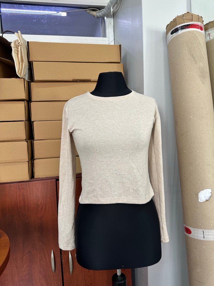Bej renkli, uzun kollu, yuvarlak yakalı kadın sweatshirtü. Pamuk kumaştan üretilmiş, rahat ve sade tasarıma sahip, günlük kullanıma uygun.