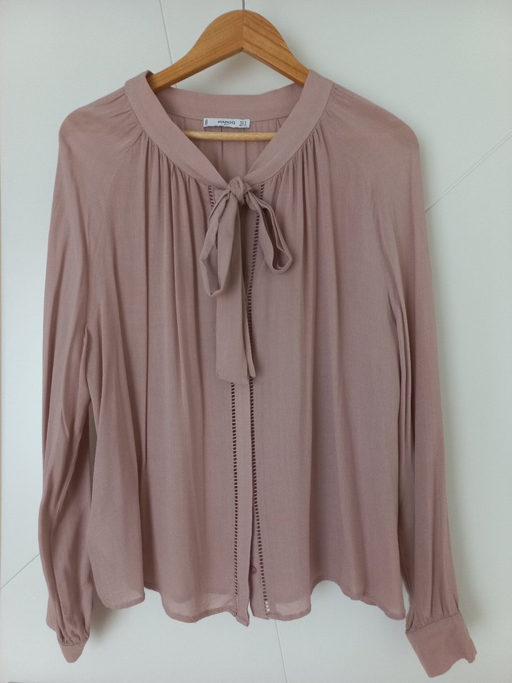Bej, uzun kollu ve dökümlü ipeksi kumaştan bluz. V yaka ve bağlama detayıyla bohem, Paris tarzı. Günlük kullanım için uygun. bir iki kez kullanılmış tertemiz geniş kedim olduğu için M..bedenede uygun