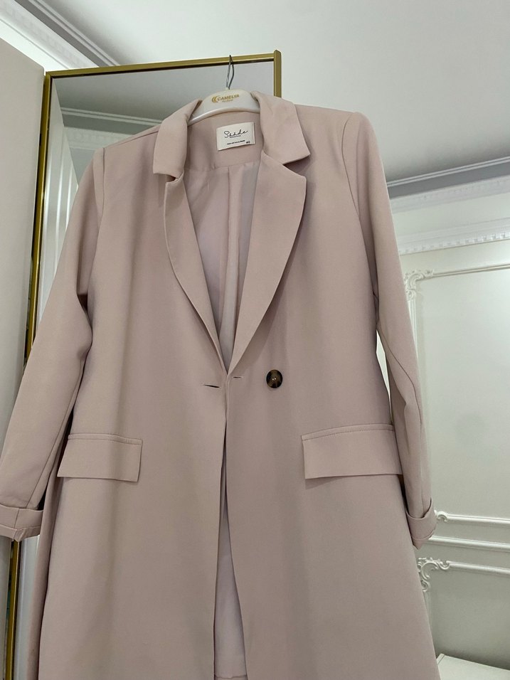 Bej Kadın Uzun Kollu Düğmeli Blazer