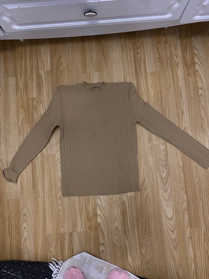 Bej renk, uzun kollu, yuvarlak yaka ve fit kesim kadın triko. Yumuşak keten kumaştan, düz ve sade tasarım günlük kullanıma uygundur. 5xl beden
