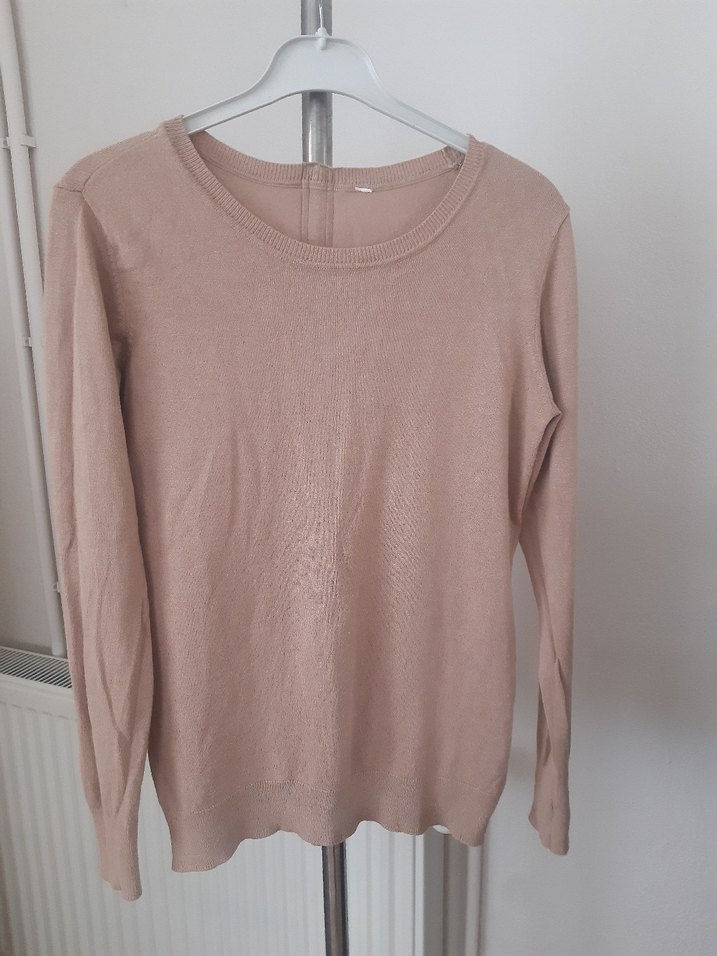 Bej renkli, uzun kollu, yuvarlak yakalı ve bol kesim kazak. Midi boy ve desensiz tasarımı günlük kullanıma uygun, zahmetsiz şıklık sunar.