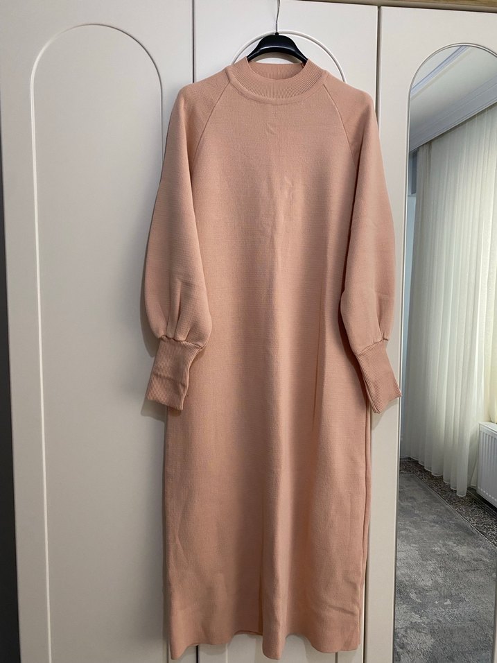 Bej, uzun kollu, bol kesim ve yuvarlak yakalı rahat elbise. Yumuşak ve sıcak kumaştan, günlük kullanıma uygun konforlu stil sunar. Ürün alındı ama hiç kullanılmadı