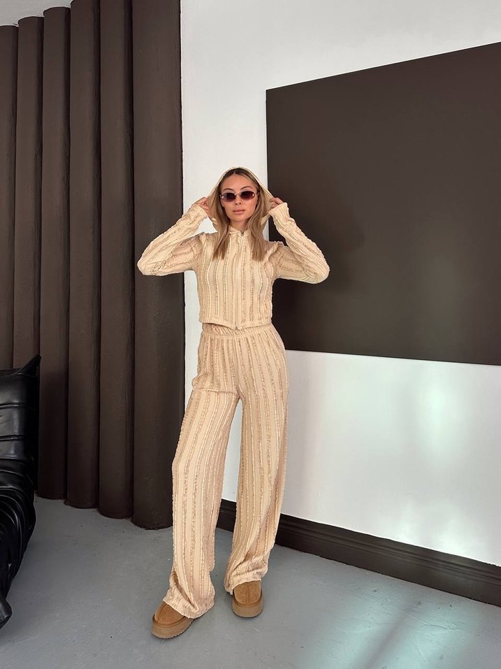 Bej Kadın Uzun Kollu Rahat Eşofman Takımı