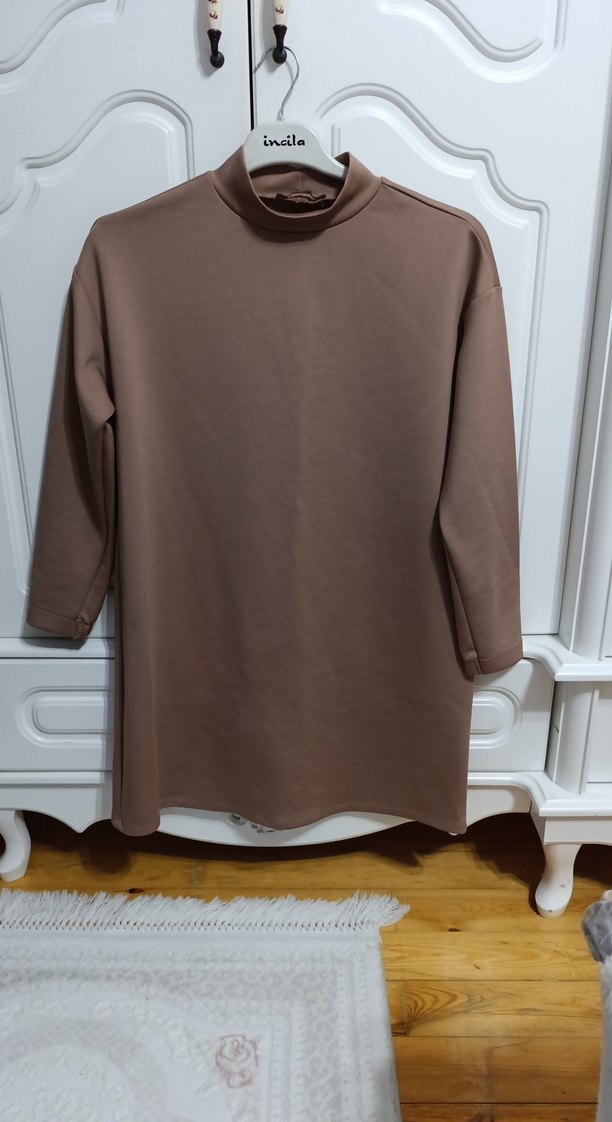 Bej renkli, yuvarlak yakalı, uzun kollu ve salaş kesimli kadın tunik. Yumuşak sentetik kumaştan, minimalist ve günlük stil için uygun. ✨ squba kumaş SM beden uyumlu dolabımi bosaltiyorum 1 2 kez giyildi temiz