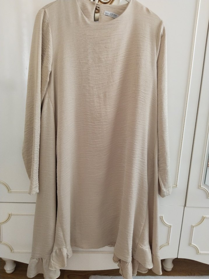 Bej şık kumaştan, uzun kollu, salaş kesim ve bisiklet yaka detaylı, dökümlü uzun tunik. Günlük kullanım için uygun, bohem tarzda. 1 defa giyildi sadece sorunsuz