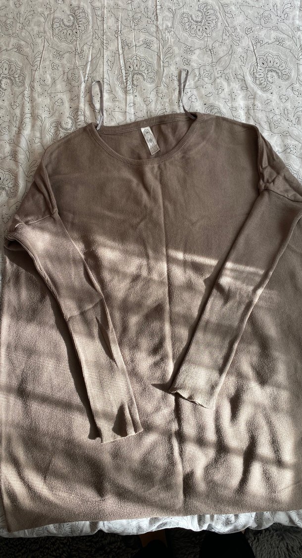 Bej renkli, triko kumaştan, uzun kollu, yuvarlak yaka ve bol kesim kadın kazak. Günlük kullanıma uygun, rahat ve şık bir parça. Gömlek ve altına çorap ile tamamlayıp çizme ile kombinlenince çok şık bir görünüm oluyor
