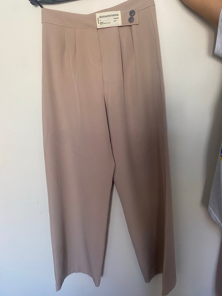 Bej renkte, uzun ve regular fit kadın kumaş pantolon. Yumuşak, ipeksi dokusu ile minimalist ve ofis için uygun tarzda, zahmetsiz şıklık sunar.
