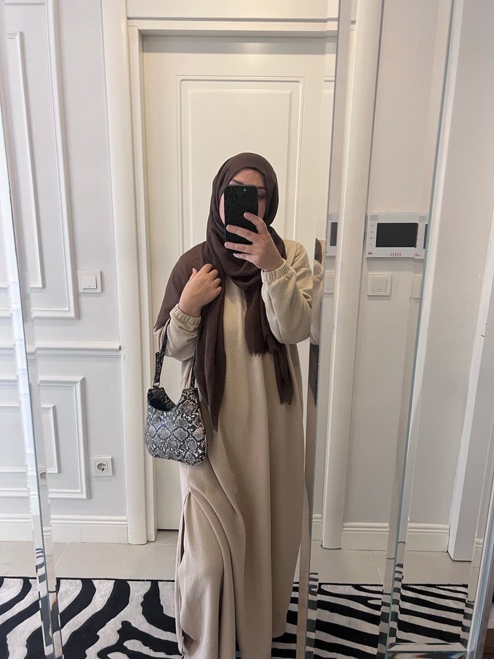 Bej renkte, uzun ve salaş kesimli bu elbise uzun kollu ve yuvarlak yaka tasarıma sahiptir. Yumuşak sentetik kumaştan üretilmiş, desensiz ve rahat bir görünüme sahiptir. Kısında kullanıma uygun