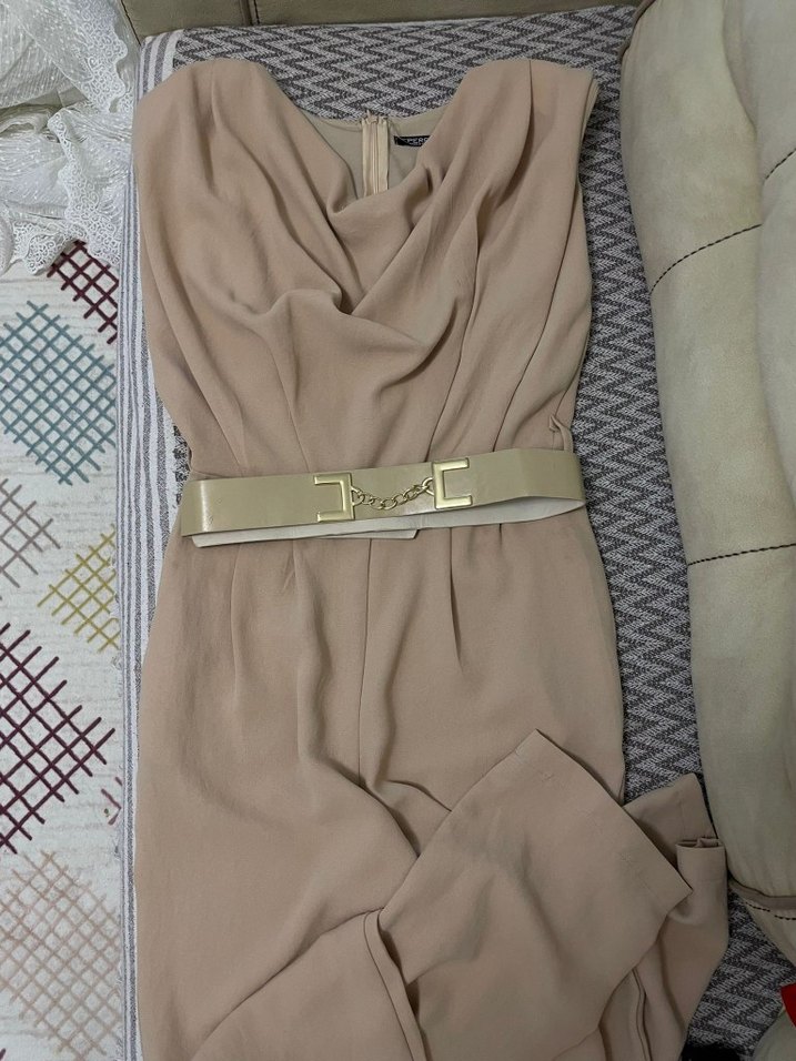 Bej Kadın Uzun Tulum Kemerli Strappy
