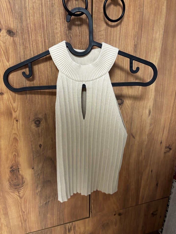 Bej Kadın Yarım Balıkçı Kolsuz Triko Süveter