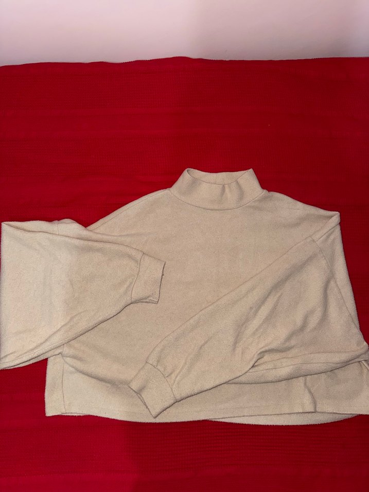 Bej renkte, uzun kollu ve yarım balıkçı yaka detaylı, yumuşak ve sıcak kumaştan üretilmiş kadın kazak. Rahat kesim ve midi boyda, günlük kullanıma uygun, sokak modasına uygun rahat bir parça.