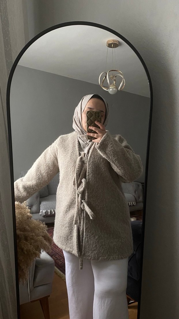 Bej renkte, yünlü ve kürklü detaylara sahip, notched lapel yakalı, bol kesim uzun kollu midi mont. Günlük kullanıma uygundur. Etiket üzerinde 'KOSTÜMX Moda' yazıyor.