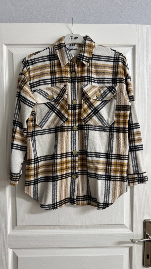Bej Kahve Ekose Desenli Kadın Gömlek