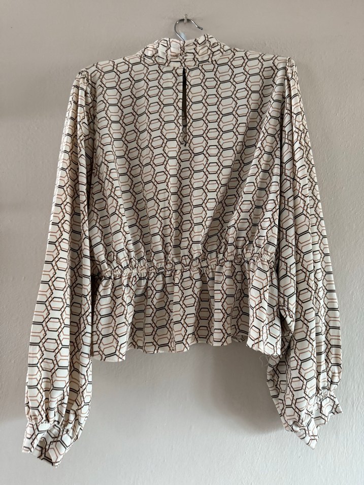 Bej kahverengi Desenli Uzun Kollu Bluz