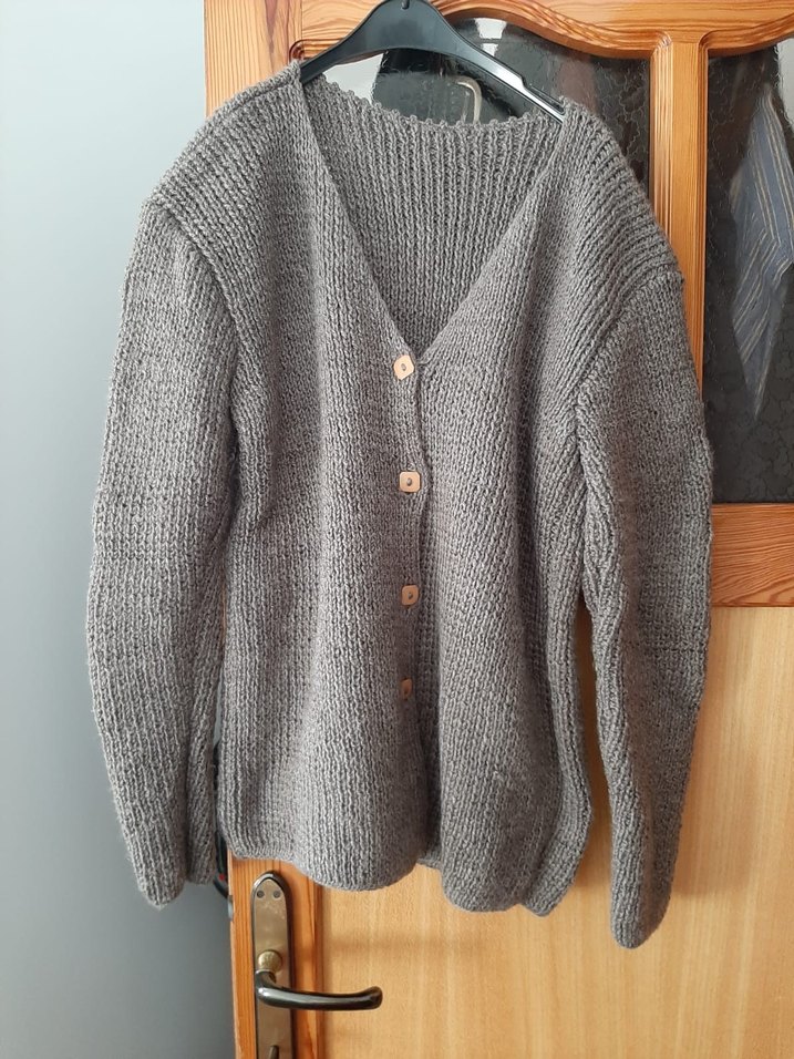 El örgüsü, uzun kollu ve midi uzunlukta, düğmeli kadın hırka. Rahat ve gevşek kesim, günlük kullanım için uygundur. Hiç giyilmedi. S/M beden uyumludur. Boy 62 cm en 45 cm.
