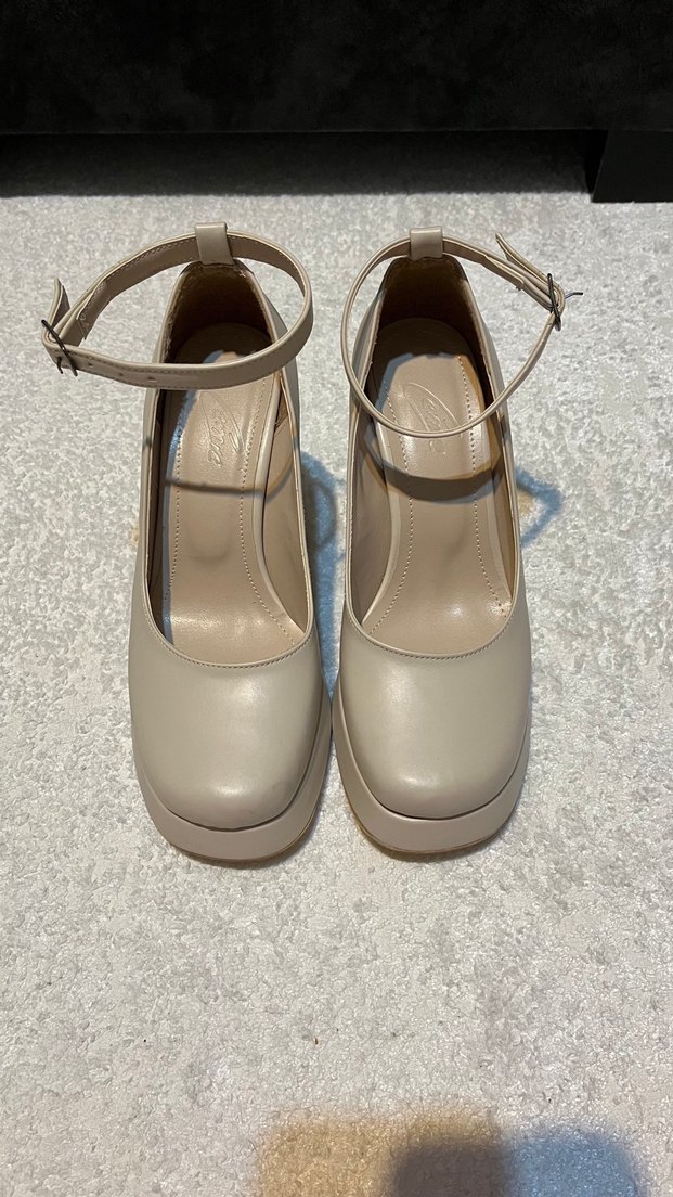 Bej renkte, bilek kayışlı ve suni deridir. 1 defa giyildi.