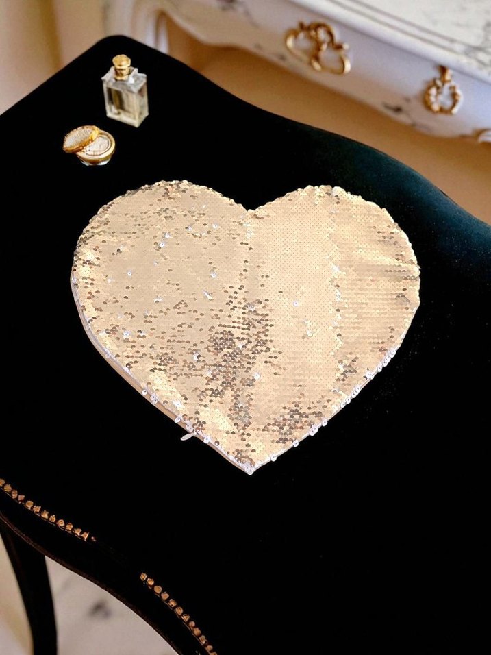Bej Kalp Şekilli Payetli Yastık Kılıfı