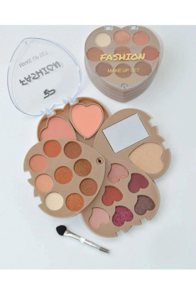 Bej kalp şeklinde, açık tonlarda far paleti. İçinde ayna ve küçük aplikatör fırça bulunur. Nötr ve sıcak renkler içerir.