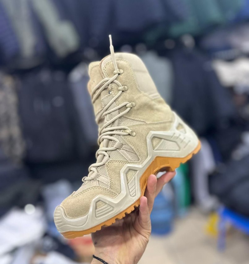 Bej renkli, kamuflaj desenli ve bağcıklı erkek botu. Kauçuk malzemeden üretilmiş, dış mekan ve sokak stili için uygundur. LOVA marka, su ve rüzgar geçirmez taktik bot