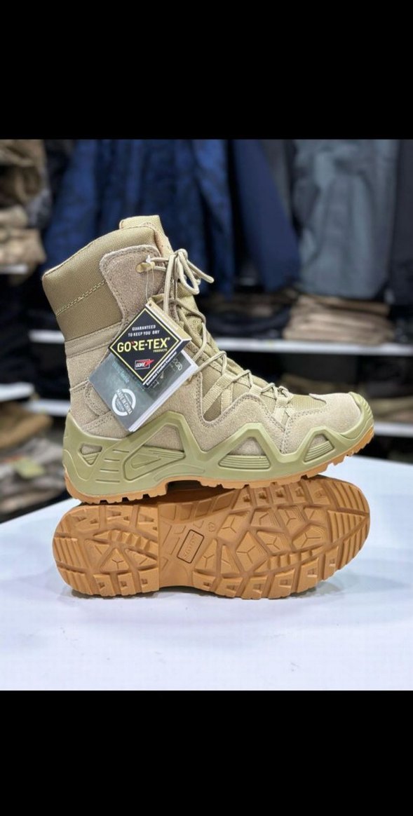 Bej ve gri kamuflaj desenli, bağcıklı ve dayanıklı kauçuk tabanlı erkek outdoor botu, trend sokak stili için uygundur.