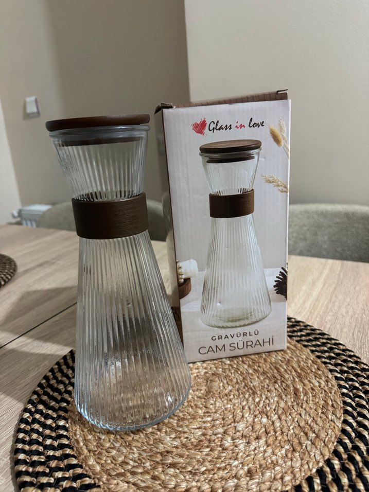Bej Kapaklı Cam Sürahi