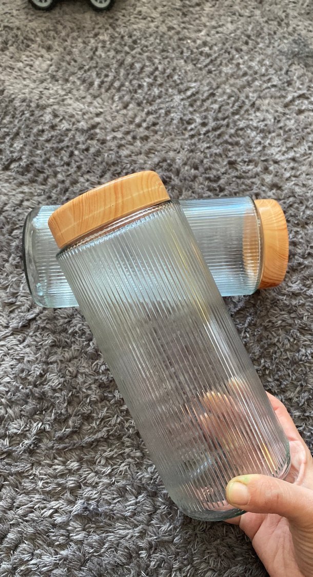 Bej ahşap görünümlü kapaklı, tutuşu kolay kabartmalı gövdeye sahip şeffaf kavanoz. Şeffaf tonlarında modern tasarım. Sıfır ürün. 2’li ürün fiyatı