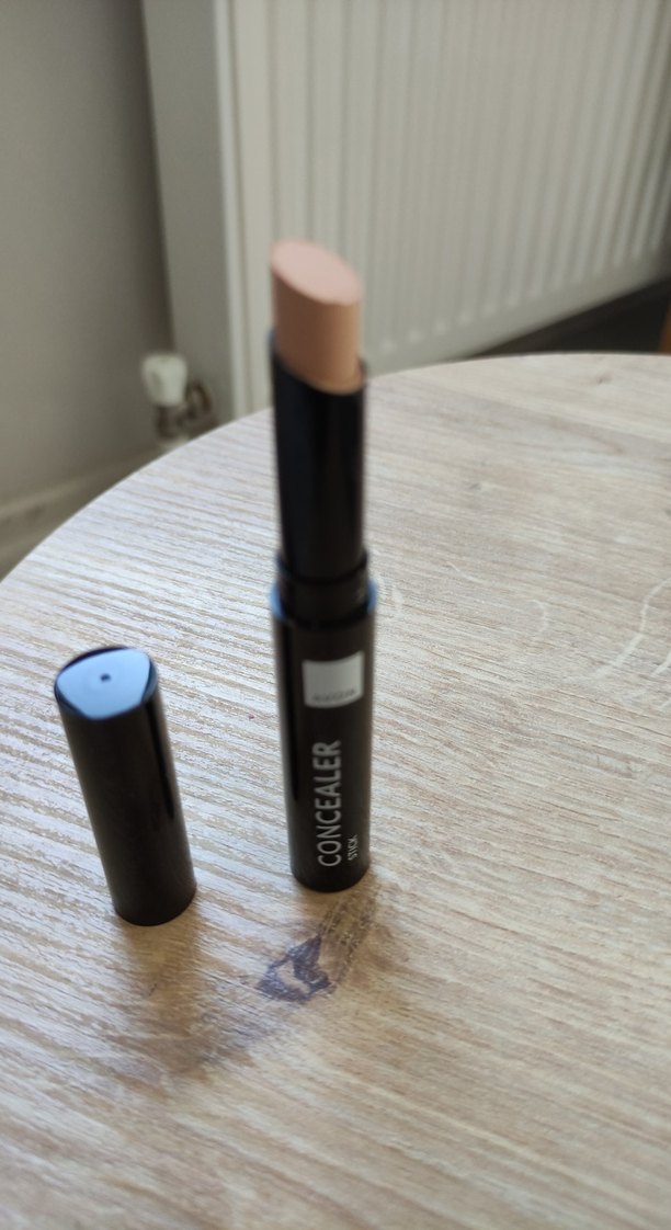 Pürüzleri kapatmak için bej renkli, siyah kutuda concealer stick.