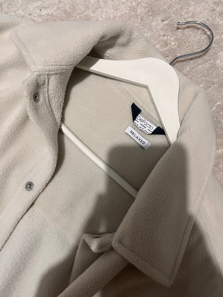 Bej renkte, düğmeli, uzun kollu, kapitone kumaştan erkek ceket . Notlu yakası ve midi boyuyla rahat, salaş kesim sunar. Günlük kullanım için uygundur.