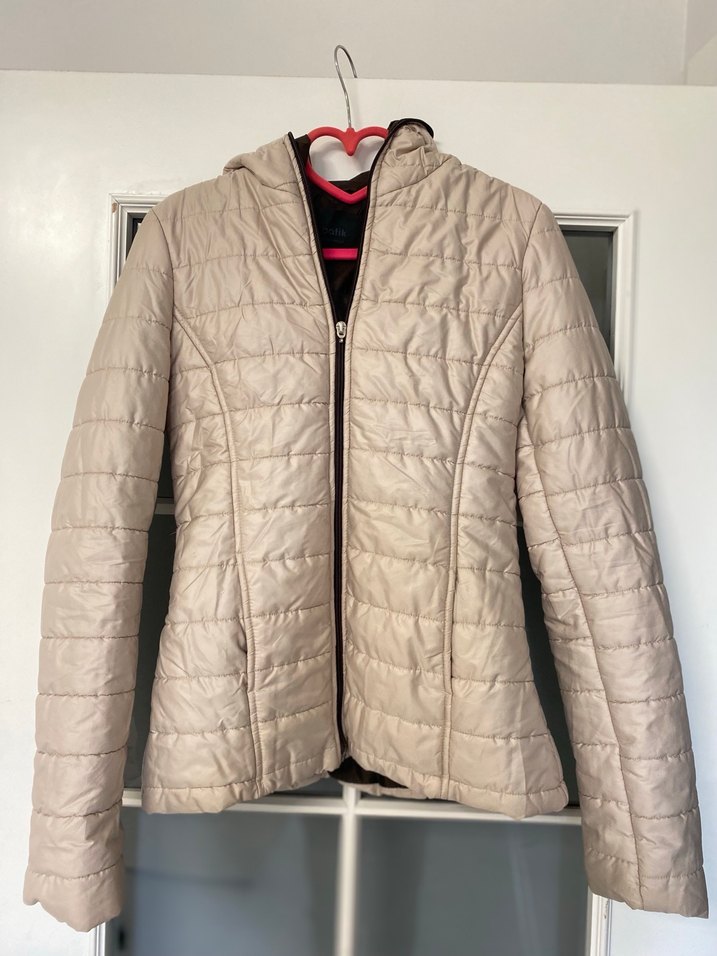 Bej Kapitone Fermuarlı Kadın Ceket