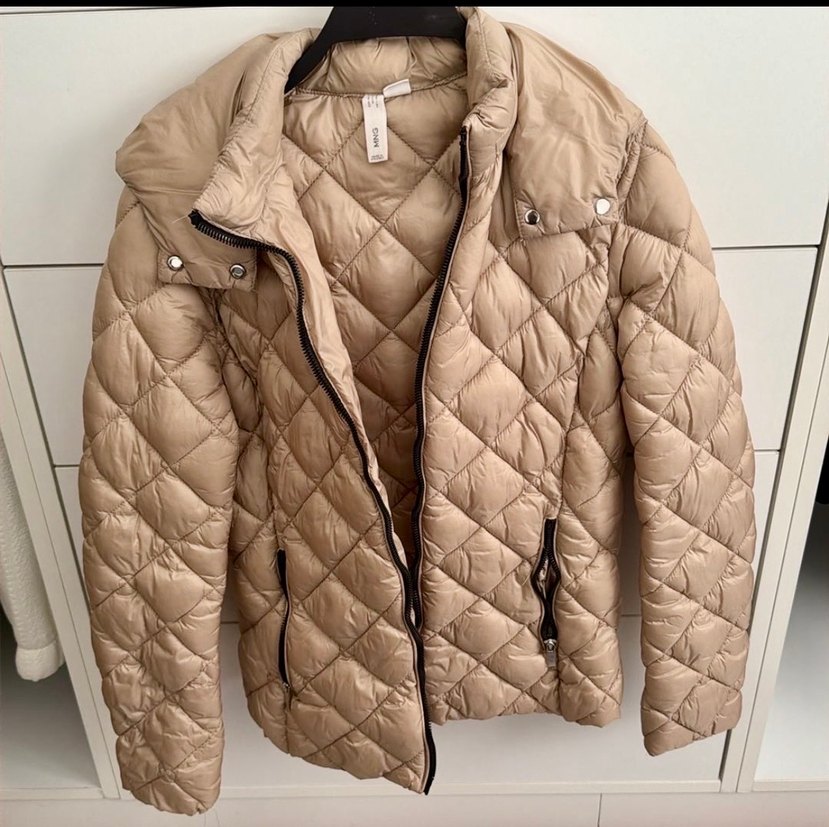 Bej kapitone kadın mont, fermuarlı ve kesik yakalıdır. Vücuda oturan midi boyda, askılı kollu, yumuşak sentetik kumaştan yapılmıştır. Günlük kullanıma uygun, rahat sokak stili. BİRKAÇ KAZ GİYİLDİ YENİ GİBİ
