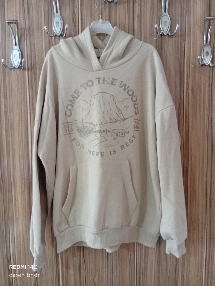 Bej Kapüşonlu Bohem Rahat Sweatshirt