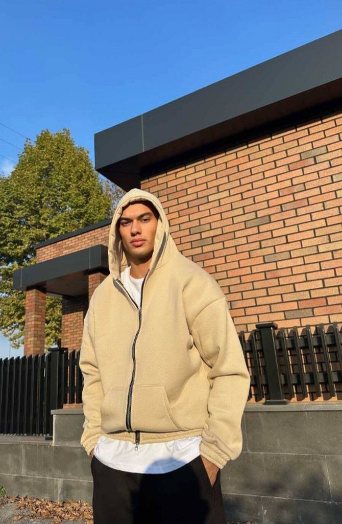 Bej Kapüşonlu Erkek Oversize Sweatshirt
