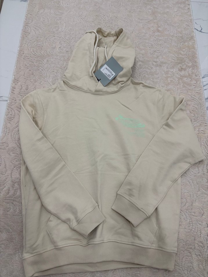 Bej renkli, kapüşonlu ve uzun kollu kadın sweatshirtü, yumuşak kumaştan ve rahat kesimlidir. Baskılı deseniyle günlük kullanım için uygundur. Sifir etiketli sorunsuz