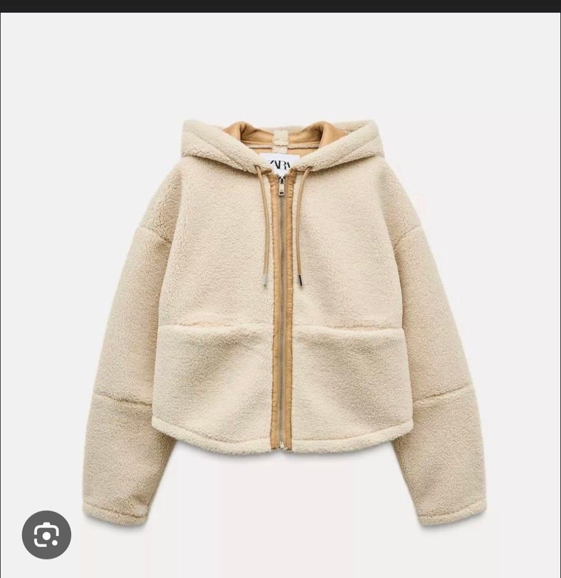 Yumuşak ve sıcak kumaştan yapılmış, bej renk kapüşonlu fermuarlı ceket. Uzun kollu, bol kesim ve midi boyda, rahat sokak tarzına uygundur.