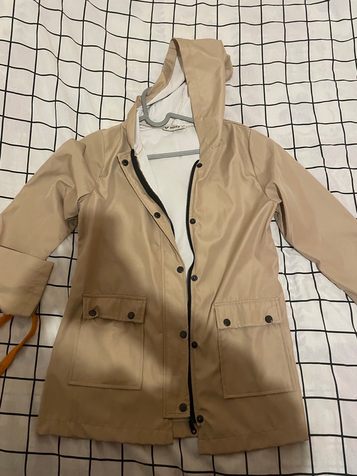 Bej Kapüşonlu ince Kadın Yağmurluk