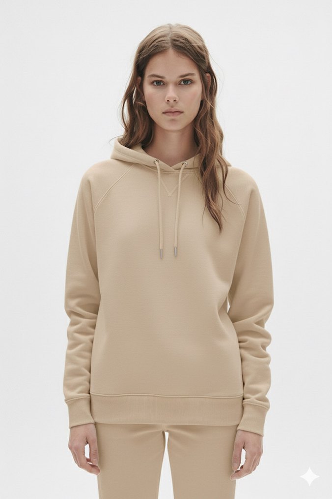 Bej Kapüşonlu Kadın 3 İplik Şardonlu Sweatshirt