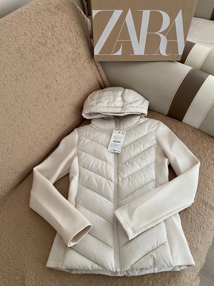 Zara marka bej renk kapüşonlu kadın ceket, fitted kesim ve kürk detaylıdır. Uzun kollu ve midi boyda, günlük sokak stili için uygundur. Rahat ve yumuşak kumaş kullanılmıştır.
