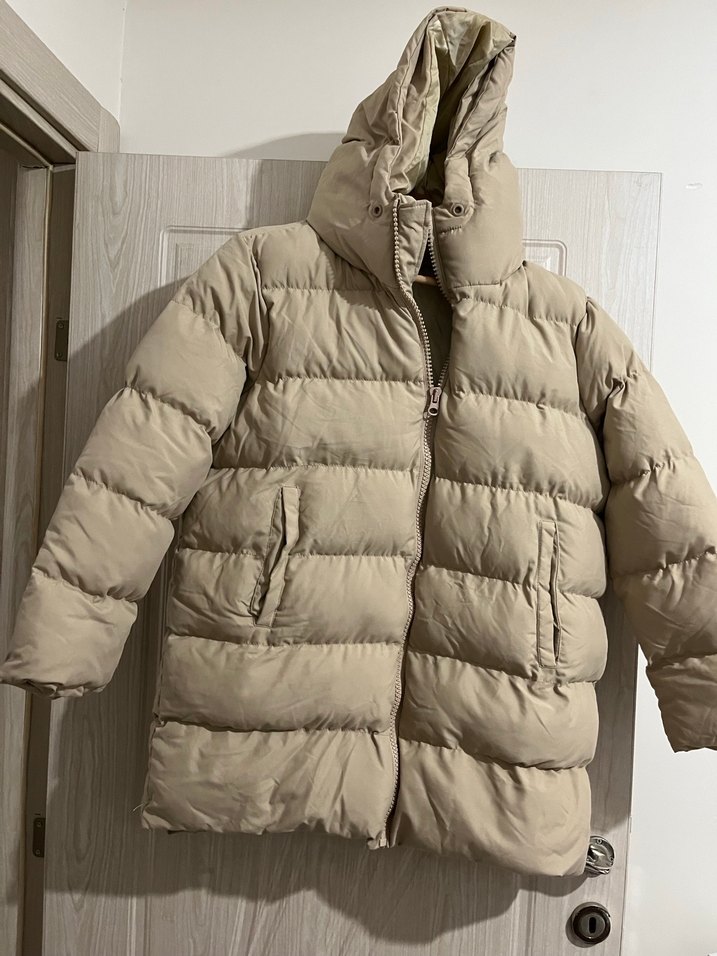 Bana 3 tane birden geldi fabrikadan beden etiketi basıldı fakat markası basılmamıştır ama kalıte olarak çok çok iyi S M L BEDENLER MEVCUT Bej kapüşonlu kadın kış montu, dar kesim ve yumuşak sıcak kumaştan yapılmıştır. Normal uzunlukta ve desensizdir, günlük kullanım için uygundur. ❄️