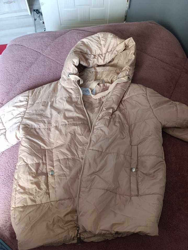 Bej renkli, kapüşonlu, düğmeli, rahat kesim kadın kışlık mont. Uzun kollu ve midi boyda, yumuşak ve sıcak tutan dokuda, günlük kullanım için uygundur.