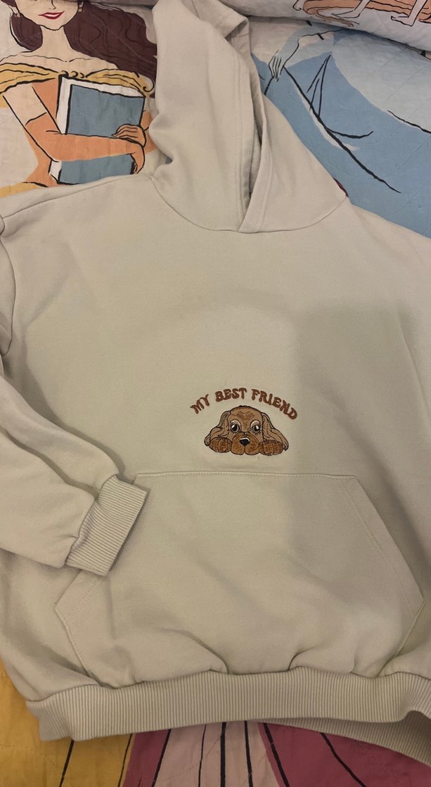 Bej Kapüşonlu Kız çocuk Sweatshirt Köpek Baskılı