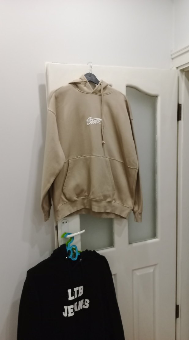 Bej Kapüşonlu Oversize Sweatshirt orjinal