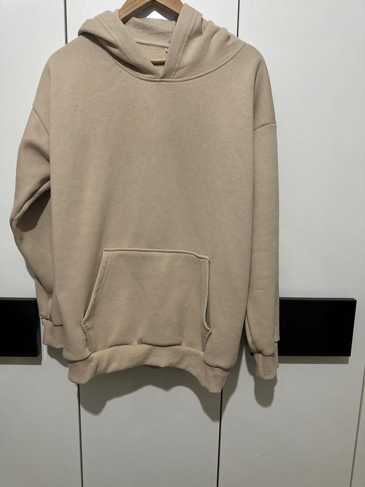 Bej renkte, kapüşonlu ve uzun kollu rahat kesim sweatshirt. Yumuşak ve sıcak kumaştan üretilmiş, gündelik kullanım için konforlu ve şık bir tercih. Ön cep ve bisiklet yaka bulunur.