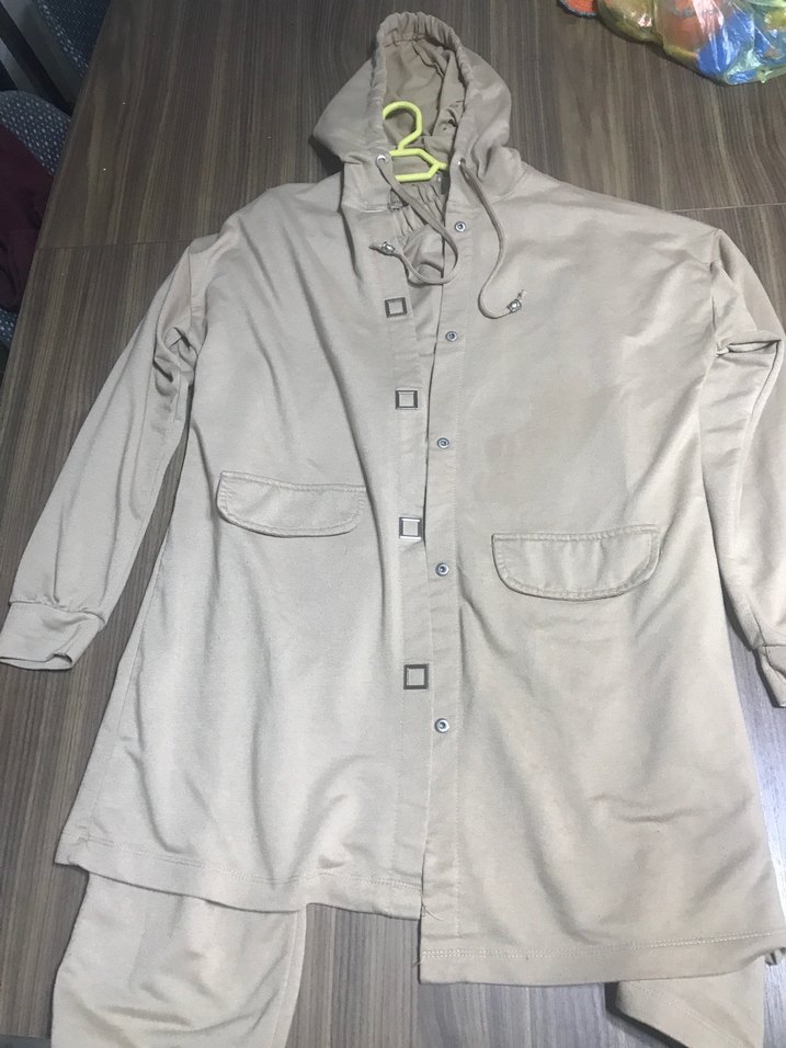 Bej Kapüşonlu Uzun Kadın Tunik takımı