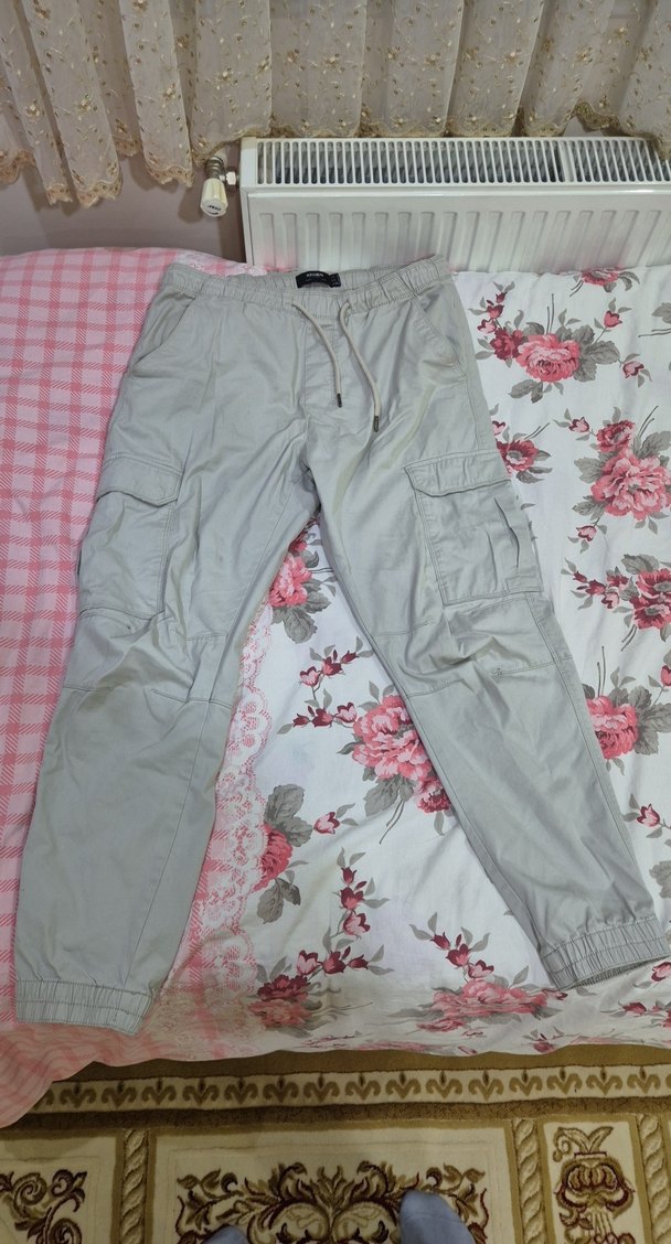 bej renkte rahat kesin kargi pantolon