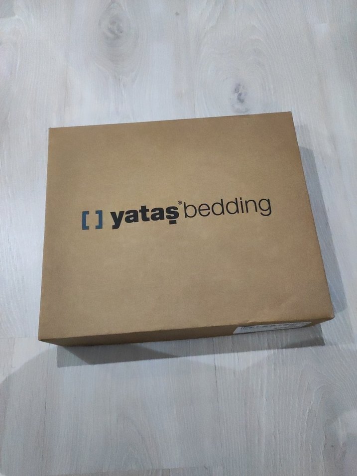 Yataş Bedding markasına ait bej renkte karton kutu, paketleme ve saklama için uygun.