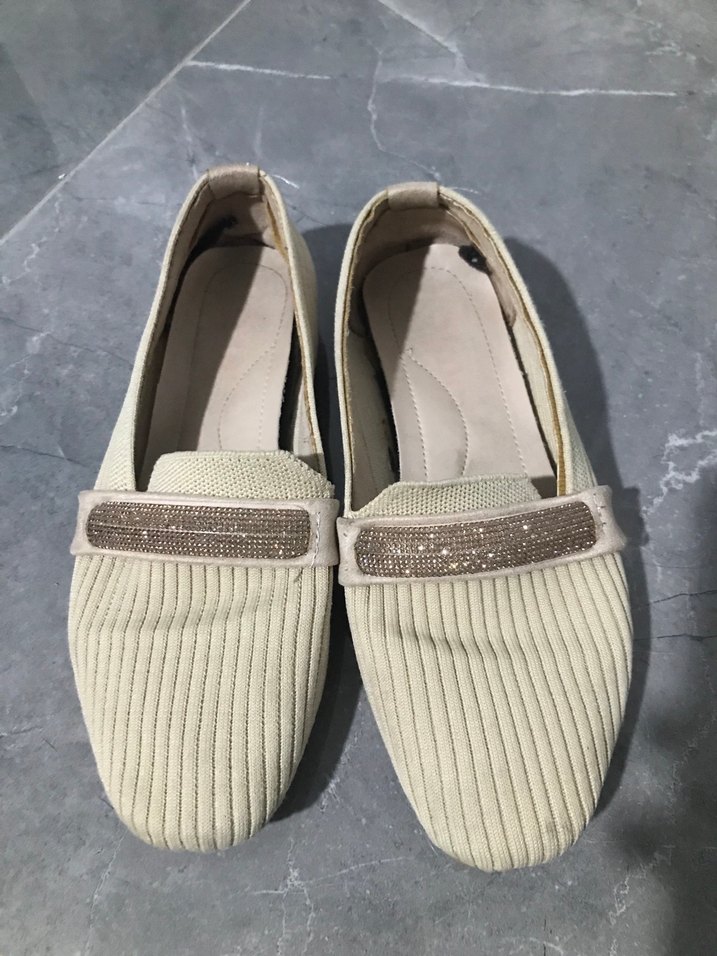 Bej renkli, katlı detaylı, dolgu topuklu ve lastik malzemeden yapılmış kadın babet. Minimalist ve normcore tarzıyla günlük kullanıma uygundur.