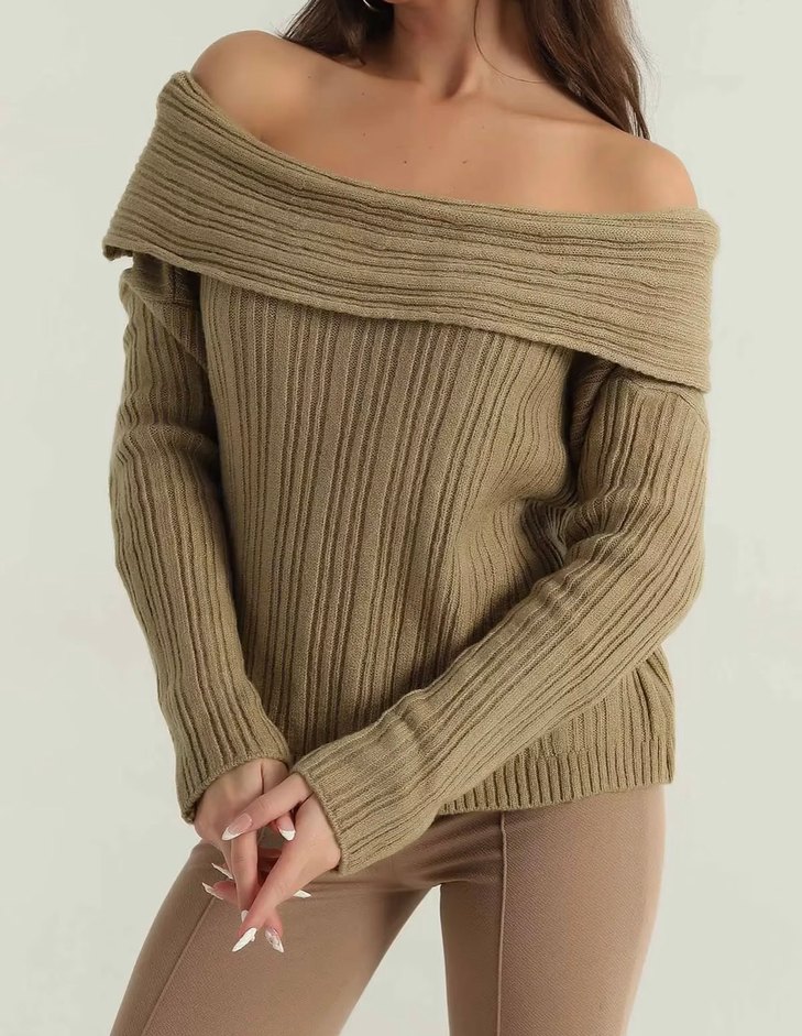 Bej Kayık Yaka Örgü Kadın Kazak
